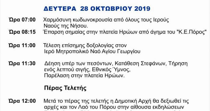 Εορτασμός 28ης Οκτωβρίου 2019 στον Πόρο και βράβευση μαθητών